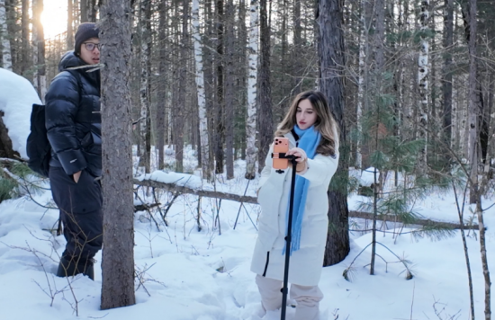 12月20日,國際媒體采風(fēng)團(tuán)一行走進(jìn)長白山聚龍火山石林體驗(yàn)雪谷穿越,3.1公里的徒步路線上,火山浮石覆雪而立,溪水潺潺在白雪間流過,原生態(tài)森林雪景讓采風(fēng)團(tuán)成員不時(shí)駐足驚嘆,快門聲此起彼伏。