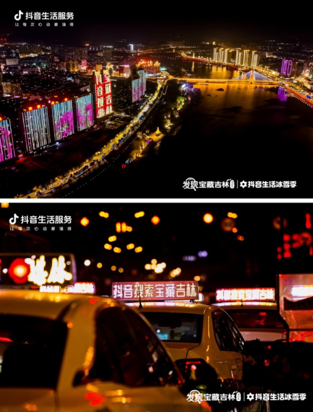 借助短視頻的傳播,吉林震撼的冬季霧凇景觀被更多網(wǎng)友看到。進(jìn)入12月,抖音生活服務(wù)在吉林市阿什小霧凇島落地“登島趕大吉”活動,帶動小霧凇島搜索量創(chuàng)冬季新高,吉林市抖音團(tuán)購搜索量顯著增長。系列活動得到吉林市委市政府的大力支持。華燈初上,吉林市松花江畔的地標(biāo)樓體上燈光閃爍著“抖音搜索,寶藏吉林”字樣。全市穿梭街巷的數(shù)千輛出租車車頂燈箱,也在提醒本地市民及異地游客關(guān)注“發(fā)現(xiàn)寶藏吉林”活動。