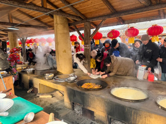 活動推出開放式沉浸式文旅體驗(yàn)線路,將刀畫、松花石雕刻等非遺技藝展演融入其中,設(shè)置了冰上套圈贏年貨、簡易冰壺等6大全年齡段友好型冰雪趣味項(xiàng)目,同時(shí)推出殺年豬、鐵鍋燉等本土特色美食,明太魚坊、粉條坊等特色業(yè)態(tài)集中亮相,更有手磨咖啡搭配現(xiàn)烤打糕的特色休閑體驗(yàn),為游客增添新春暖意。活動當(dāng)天邀請了100余名網(wǎng)絡(luò)達(dá)人深度探訪打卡,累計(jì)發(fā)布宣傳作品200余條,單直播間最高瀏覽量突破500萬。春節(jié)期間,活動已接待游客近3萬人次,獲得各級官方媒體及新媒體平臺重點(diǎn)宣推,相關(guān)內(nèi)容總播放量破千萬,實(shí)現(xiàn)線上線下流量雙向豐收。