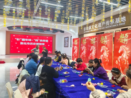 敦化市歷史博物館開展的“針藏年味·線納新!鼗履晔肿骶幙椂Y韻雅集”活動溫情滿滿,非遺老師帶領(lǐng)游客一針一線編織新年禮物,指尖流轉(zhuǎn)間,傳統(tǒng)年俗的魅力盡顯。