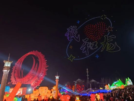 夜幕降臨,活動迎來高潮時刻!耙箍砧 龍馬精神”無人機表演震撼亮相,數百架無人機劃破夜空,依次排布出“我愛和龍”“紅太陽照邊疆”等極具和龍?zhí)厣膱D案,科技的靈動與浪漫的氛圍完美交融,引得現(xiàn)場觀眾紛紛駐足拍攝、贊嘆不已。