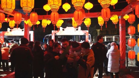 夜幕初臨的長白山文化博覽城,早已被濃濃的節(jié)日氛圍包裹。成排的紅燈籠高高掛起,趣味燈謎懸于半空,構(gòu)成一道亮麗的風景。市民和游客踴躍參與互動競猜,或低頭凝神思索,或與家人朋友輕聲討論,沉浸式體驗傳統(tǒng)民俗的樂趣。