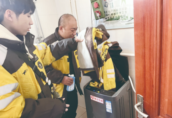 1月19日一早,記者走進(jìn)服務(wù)驛站時,已有幾位騎手在此休息。干凈整潔的床鋪、沙發(fā)、桌椅,晾衣架、飲水機(jī)、微波爐、礦泉水、應(yīng)急藥品等一應(yīng)俱全!斑@個服務(wù)驛站特別好,旁邊就是美團(tuán)的工作站點,每天開完早會或者不忙時,我們都會來這休息,吃個飯、喝口水,告別風(fēng)餐露宿。衣服臟了還可以用洗衣機(jī)洗,特別省心,就像家一樣!蓖赓u員郭蕊說。