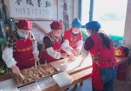 1月16日,記者走進(jìn)中興村鹿角溝農(nóng)家院飯店,一派忙碌景象。村民們分工協(xié)作、動(dòng)作嫻熟,湖魚剔骨、餡料調(diào)配、手工包制、封裝打包,每一道工序都有條不紊。屋外,一輛滿載著兩千斤手工水餃的貨車正緩緩駛離,發(fā)往訂貨方。