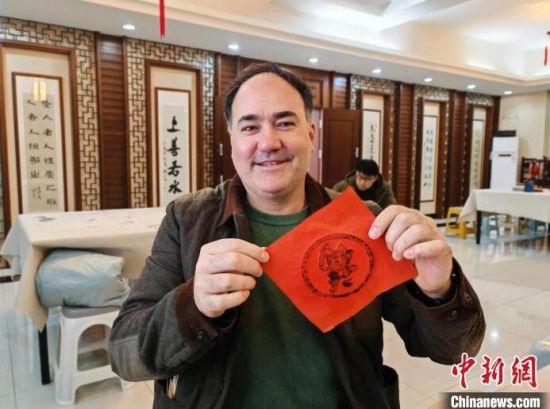 涂墨、鋪紙、錘拓,揭下紙張……一個個喜氣洋洋的“!弊周S然紙上。大年初六,在吉林長春文廟,來自西班牙的達奇體驗了一次用雕版印刷的方式拓印福字,濃濃的墨香里散發(fā)著濃濃的年味。