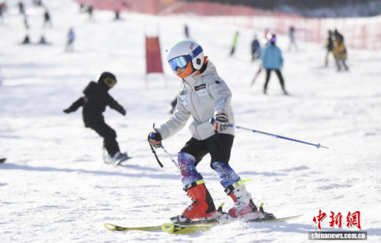 吉林霧凇冰雪節(jié)開幕當(dāng)天,游客在中旅松花湖滑雪場(chǎng)暢滑!∈橛 攝