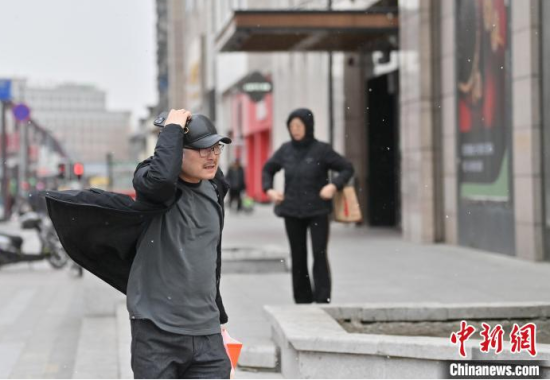 3月12日,長春市迎來大風(fēng)天氣,市民捂住帽子在風(fēng)中行走!埇 攝