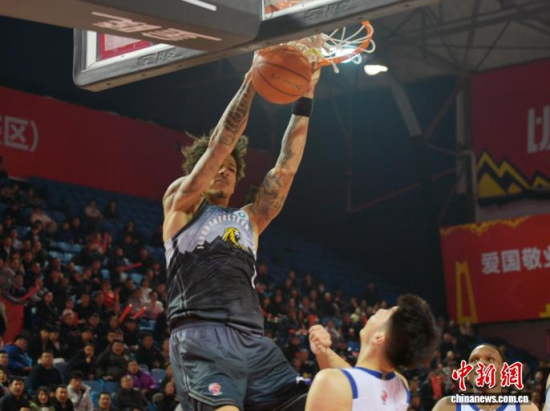 2月2日晚,吉林長春,吉林隊外援威爾遜在比賽中暴扣得分。 中新社記者 張瑤 攝