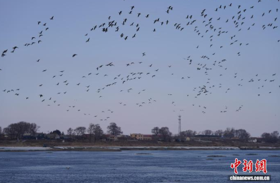 中新網(wǎng)吉林3月16日電 (記者 石洪宇)連日來,豆雁、鴻雁等萬余只鳥類翱翔于吉林省蛟河市郊外,場面十分壯觀。蛟河市官方介紹,當?shù)刈鳛楹蝤B遷徙的重要“驛站”,今年過境的雁類數(shù)量有所增加,時間與往年相仿。