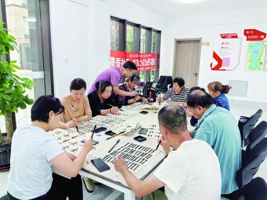 “社區(qū)為老年人提供了休閑娛樂的場所,更提供了適宜老年人個性化需求的學(xué)習(xí)平臺,讓我們享受到理想型的老年生活!泵闲穆f。如今,得益于社區(qū)提供的學(xué)習(xí)平臺,孟心蔓成為社區(qū)書法課堂的固定學(xué)員,每周一、周三、周五下午,她都與社區(qū)老年居民共赴課堂,在墨香中享受書法帶來的快樂。