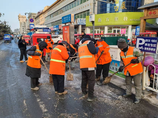 同時(shí)走訪沿街商戶、商場(chǎng),督促相關(guān)負(fù)責(zé)人及時(shí)清除背光區(qū)冰面,清理時(shí)根據(jù)實(shí)際情況采用人工清理和撒布融雪劑相結(jié)合的方式,確保道路整潔安全。本次行動(dòng),城管執(zhí)法局出動(dòng)執(zhí)法人員及環(huán)衛(wèi)人員共計(jì)200余人,廣泛動(dòng)員臨街商戶、相關(guān)單位積極配合,投入到除冰工作中來。