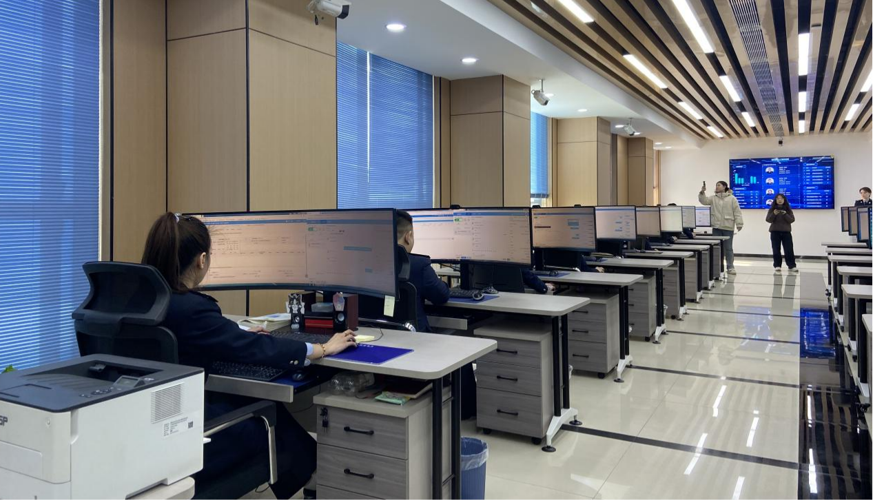 如果說(shuō)一樓大廳是服務(wù)的“前臺(tái)”,那么二樓稅費(fèi)服務(wù)集約處理中心則是支撐這一切的“大腦”。巨大的電子顯示屏上實(shí)時(shí)滾動(dòng)著各項(xiàng)數(shù)據(jù):稅款繳納、納稅申報(bào)的頻次和占比,以及每個(gè)征納互動(dòng)人工坐席的會(huì)話數(shù)量、服務(wù)時(shí)長(zhǎng)。