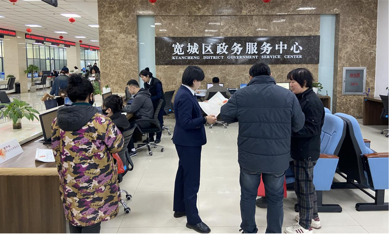 1日,記者在寬城區(qū)政務(wù)服務(wù)中心看到,這里的服務(wù)細節(jié)滿滿,剛進入大門,地面就貼有導(dǎo)視地標,辦事項目一目了然,左右兩側(cè)各有一個殘疾人(視障、聽障)服務(wù)指示牌,自助服務(wù)區(qū)旁擺放著數(shù)臺輪椅,還專門為工作日不能來辦業(yè)務(wù)的個人和企業(yè)推出周末預(yù)約服務(wù)。