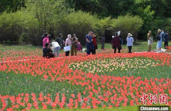 5月9日,在長春市長春公園內(nèi),市民在賞花拍照。正值初夏時節(jié),公園內(nèi)40余萬株郁金香迎來盛花期,艷麗奪目,吸引眾多市民前來觀賞。(完)