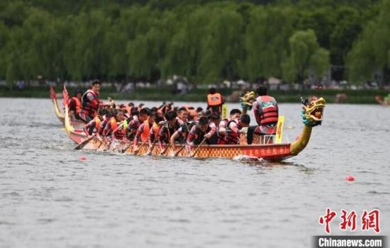 中新網(wǎng)長春6月22日電 (記者 郭佳)22日是中國傳統(tǒng)節(jié)日端午節(jié),吉林省第一屆全國龍舟邀請賽在長春伊通河舉辦,吸引來自吉林、安徽、廣東、河北等地的16支隊伍、約300人揮槳逐浪,奮勇爭先。