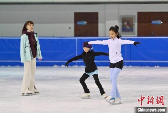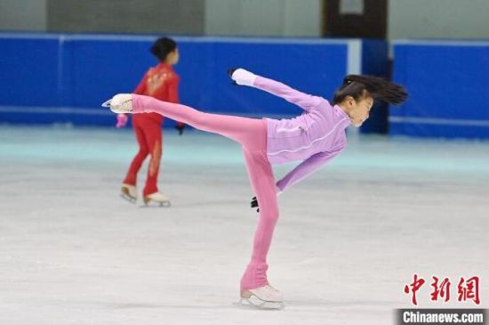 8月14日,在長(zhǎng)春市冬季運(yùn)動(dòng)管理中心內(nèi),小運(yùn)動(dòng)員在進(jìn)行花樣滑冰訓(xùn)練。正值暑假,花滑小將們?cè)诮叹殏兊闹笇?dǎo)下積極練習(xí),為了自己的體育夢(mèng)想拼搏。中新社記者 張瑤 攝