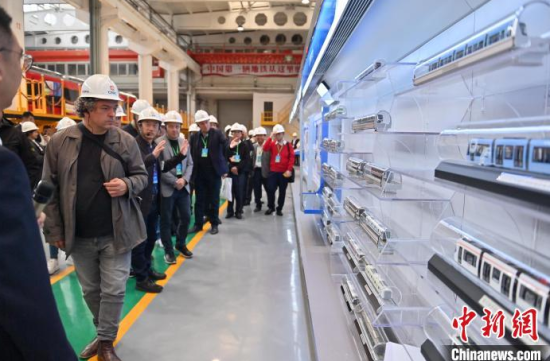 10月14日,吉林長春,外賓在中車長客體驗地鐵列車。當天,50多個國家的200多名政黨領(lǐng)導(dǎo)人、部分外國駐華使節(jié)和外國在華工商界代表等到訪吉林長春,赴中國一汽、長光衛(wèi)星、中車長客等科技企業(yè)參觀,點贊制造業(yè)尋求合作機會。中新社記者 張瑤 攝