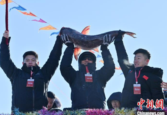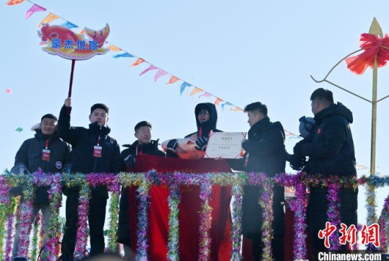12月28日,吉林查干湖第23屆冰雪漁獵文化旅游節(jié)開(kāi)幕。當(dāng)天,在查干湖湖面上舉行的“頭魚(yú)”拍賣儀式上,“頭魚(yú)”拍出1199999元人民幣。  中新社記者 張瑤 攝