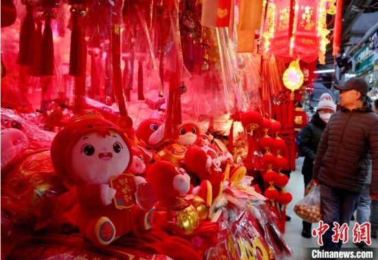 1月10日,吉林長春,市民在選購蛇年新春飾品。隨著農歷春節(jié)的臨近,燈籠、春聯、年畫、福字等新春飾品逐漸熱銷。中新社記者 張瑤 攝