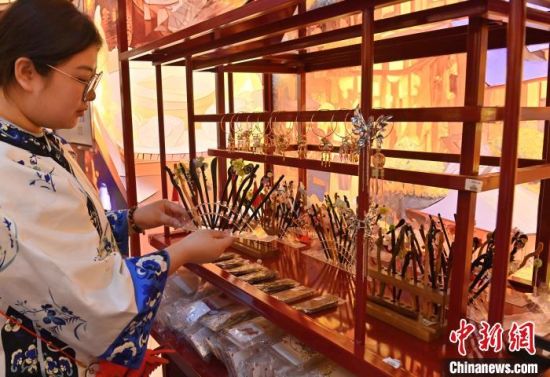 2月18日,在長春市一家商場內(nèi),商家在陳列簪子。中新社記者 張瑤 攝