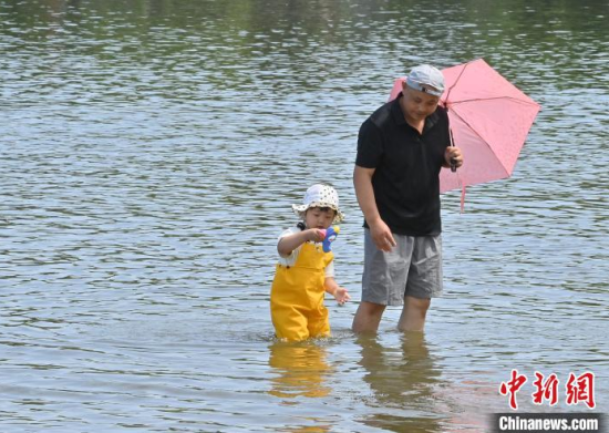 7月8日,吉林長(zhǎng)春,小朋友來到南湖公園戲水避暑。長(zhǎng)春的高溫“桑拿天”已持續(xù)多日,大批市民來到公園親水納涼。中新社記者 張瑤 攝