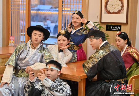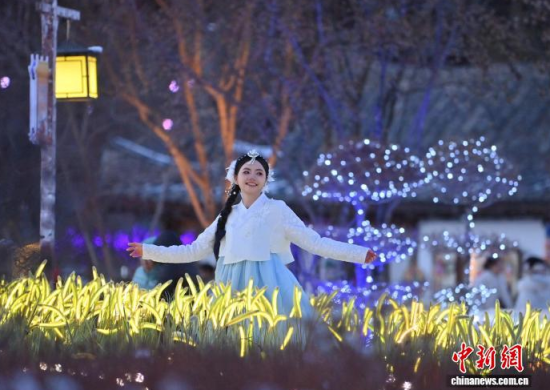 12月2日,在吉林省延邊州延吉市中國朝鮮族民俗園內(nèi),游客身著朝鮮族服飾拍照。作為中國唯一的朝鮮族自治州和最大朝鮮族聚居地,延邊近年旅游熱度持續(xù)攀升,朝鮮族服飾旅拍已成為當?shù)刈钍軞g迎的旅游體驗之一。盡管遭遇降溫降雪天氣,游客熱情依然不減,在銀裝素裹的園中定格獨具民族風情的畫面。中新社記者 張瑤 攝