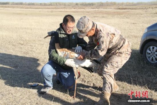 這只編號(hào)為JM-219的白鶴半個(gè)月前在黑龍江勝山國(guó)家級(jí)自然保護(hù)區(qū)附近被救護(hù),被村民發(fā)現(xiàn)時(shí)體力透支、頭部帶傷。勝山保護(hù)區(qū)工作人員將其送入救助站喂食小魚并進(jìn)行康復(fù)護(hù)理。為幫助它重返遷徙群體,該保護(hù)區(qū)決定將其轉(zhuǎn)送至白鶴遷徙路線的重要節(jié)點(diǎn)——吉林莫莫格國(guó)家級(jí)自然保護(hù)區(qū)。