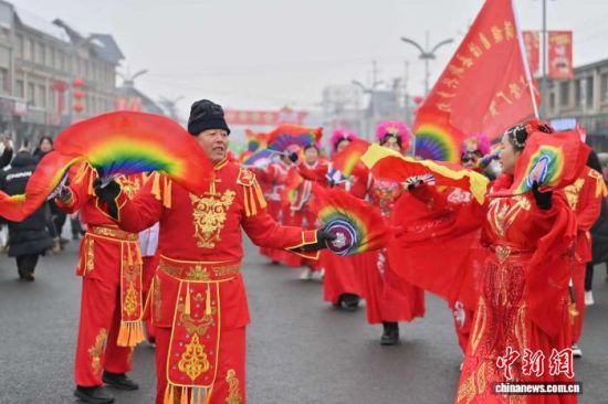 2月10日,民眾在吉林長(zhǎng)春表演東北秧歌。趙瑩 攝